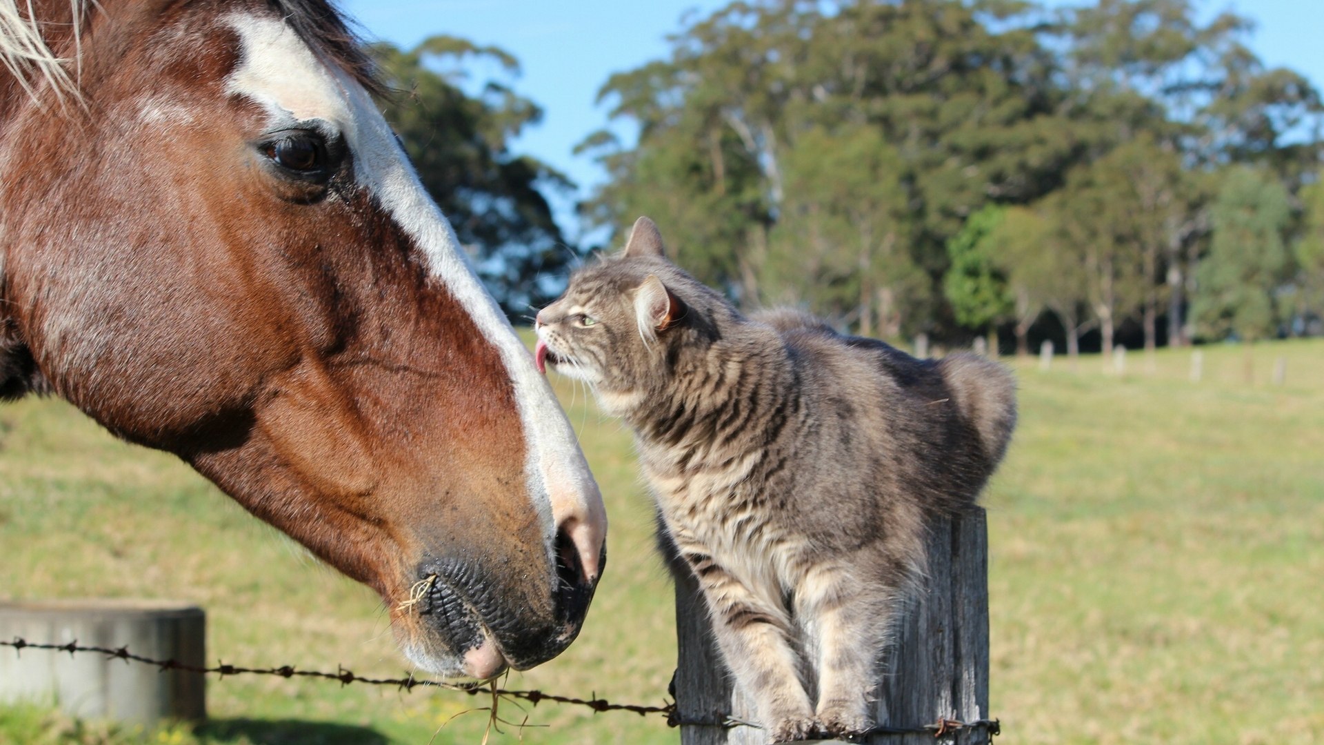 Кот и лошадь - 1920x1080