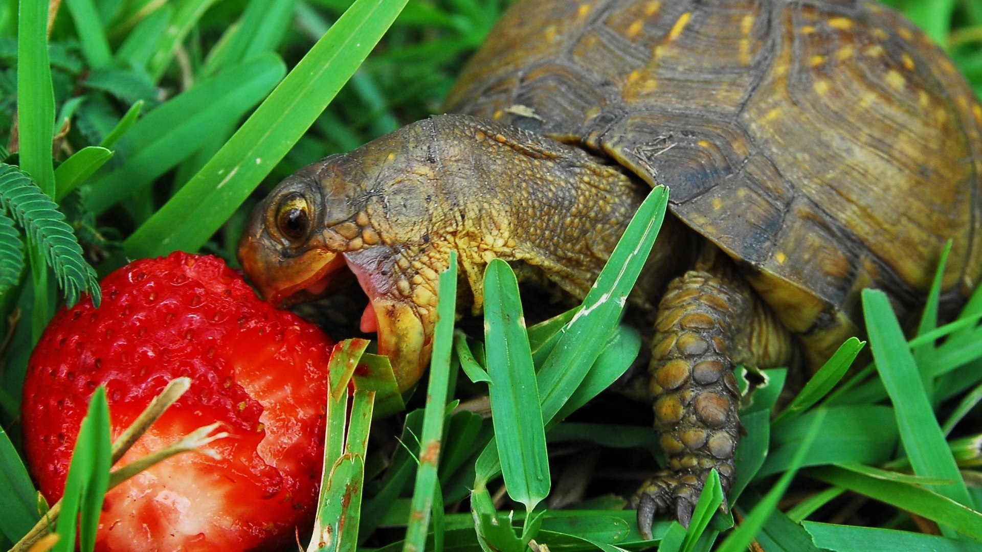 Черепаха ест клубнику - 1920x1080