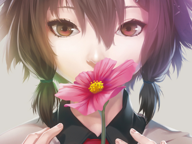 Обои: Девушка аниме нюхает розовый цветок
