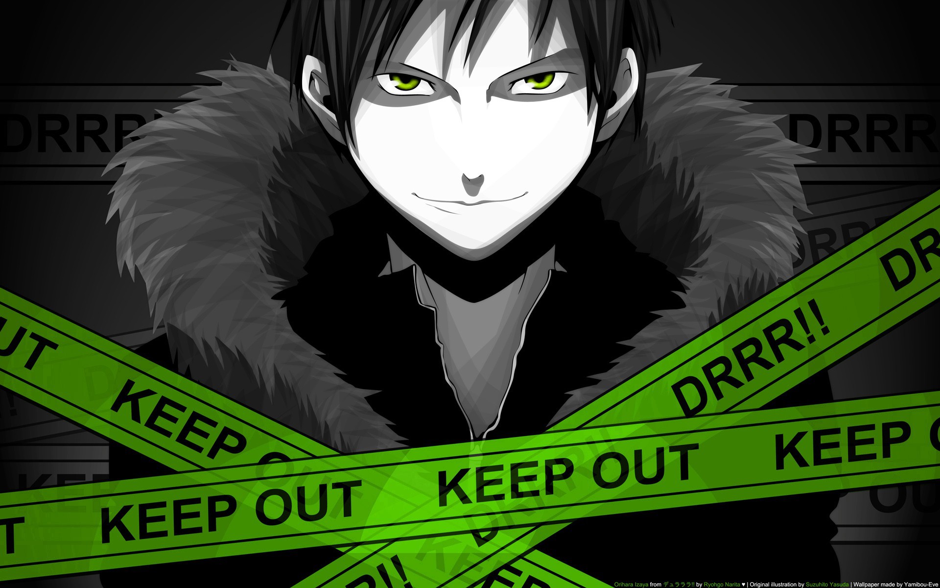 Обои: Герой аниме Дюрарара!! позади полицейских ленточек