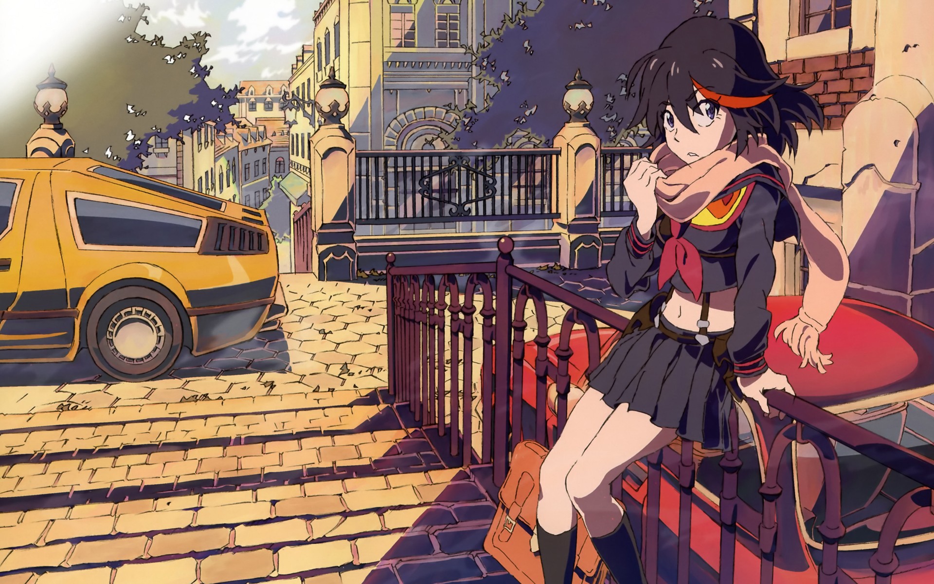Девушка Матои сидит на заборе, аниме - 1920x1200