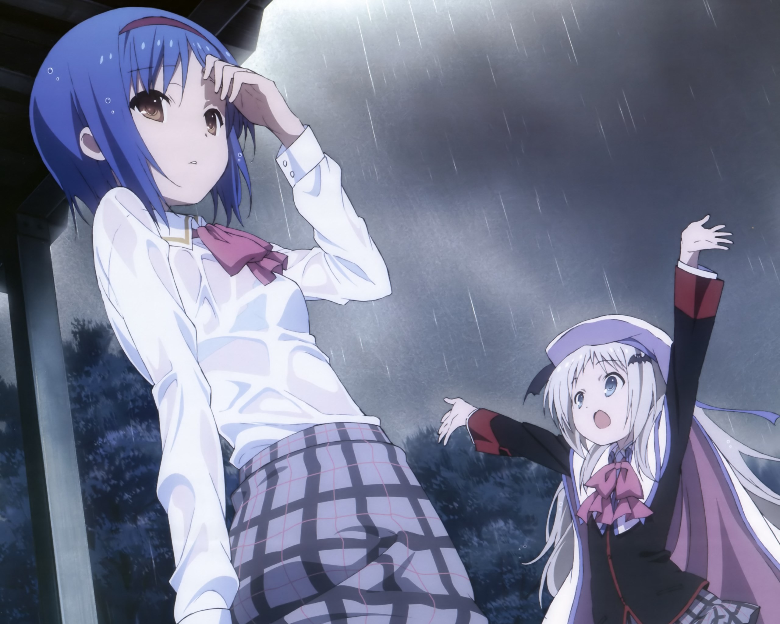 Аниме девушки Маленькие проказники под дождем - 2560x2048