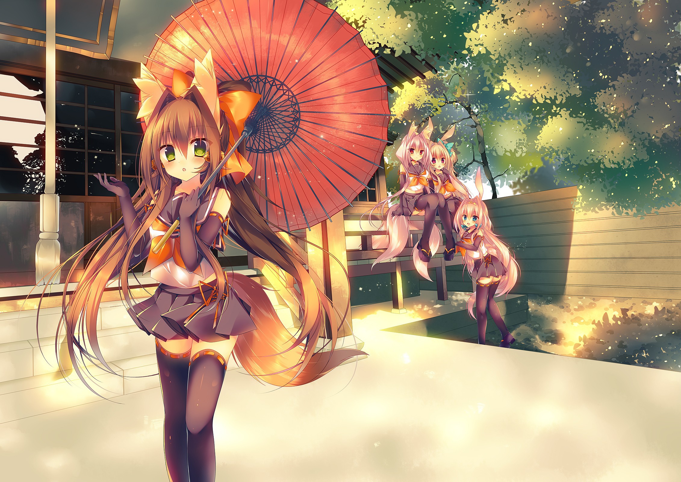 Девушка с зонтом из аниме Кэмономими - 2262x1600