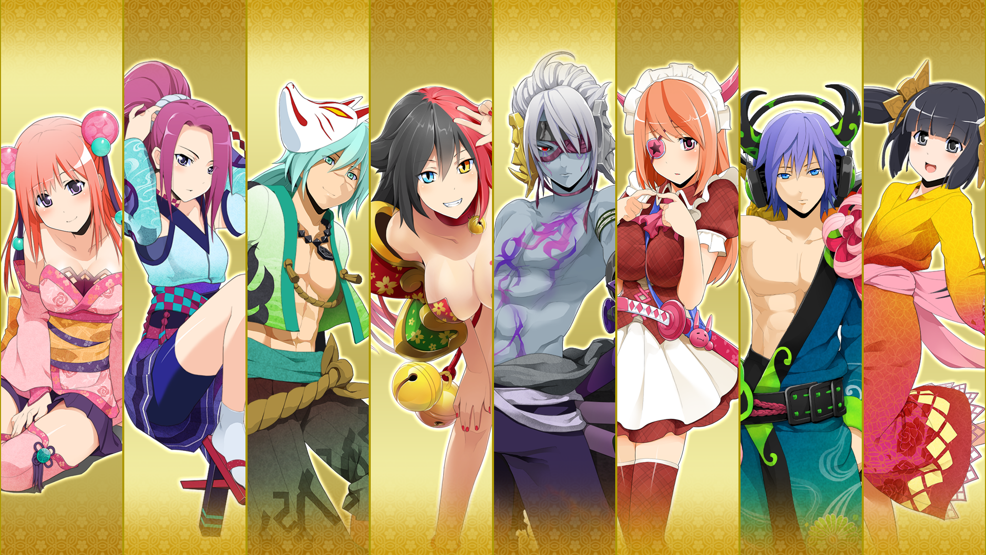 Девушки персонажи аниме Onigirl - 1920x1080