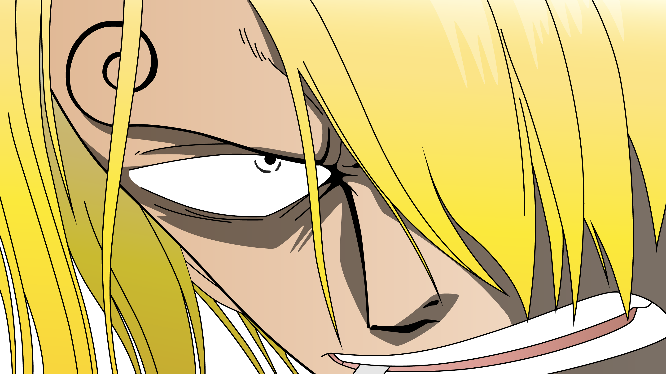 Обои: Желтые волосы на лице Санджи, аниме Большой куш