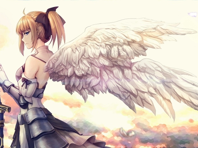 Девушка аниме с белыми крыльями ангела - 2560x1440
