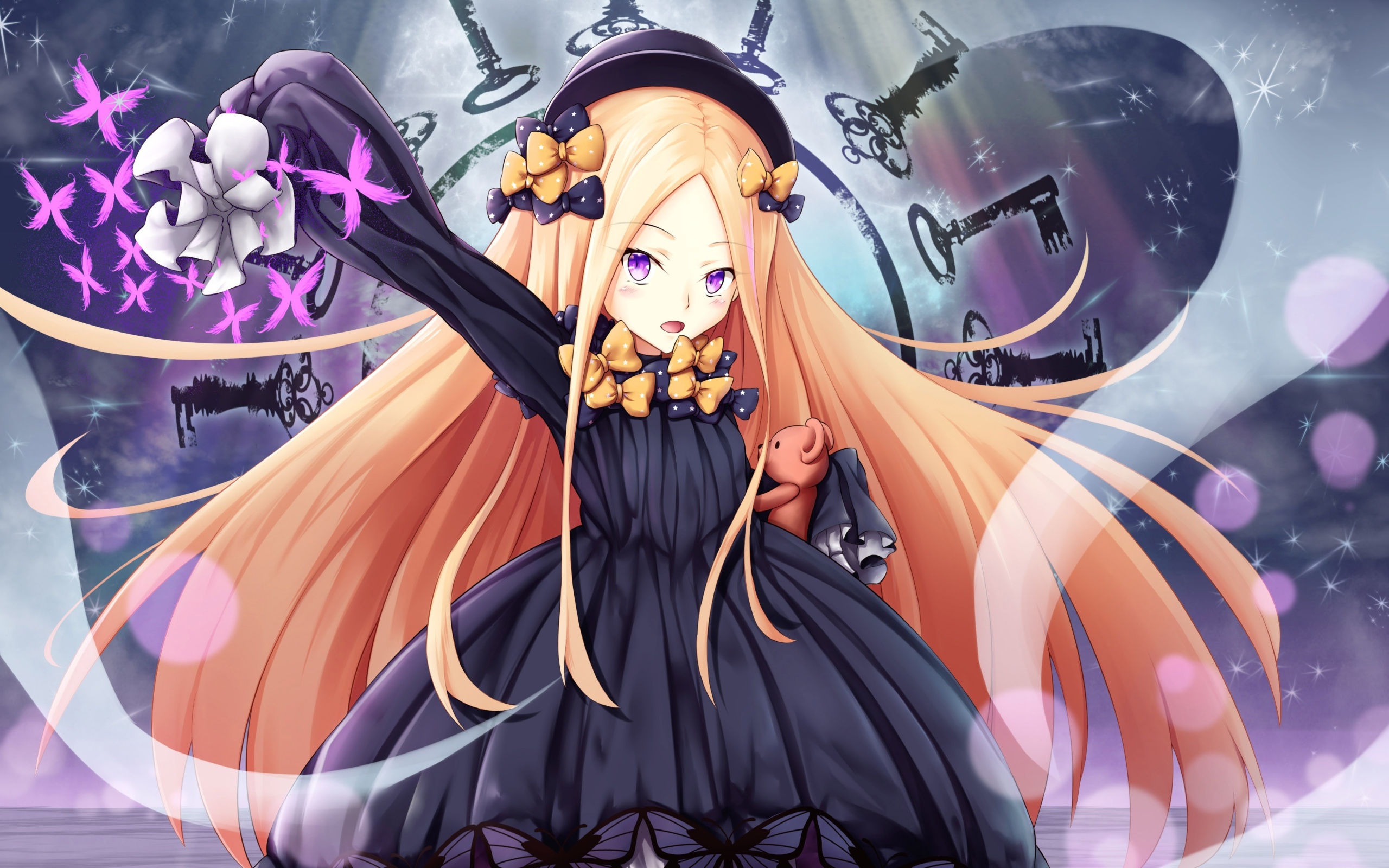 Девушка аниме с розовыми волосами в фиолетовом платье Обои для рабочего стола 2560x1600