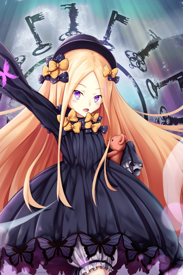 Девушка аниме с розовыми волосами в фиолетовом платье Обои для рабочего стола 640x960