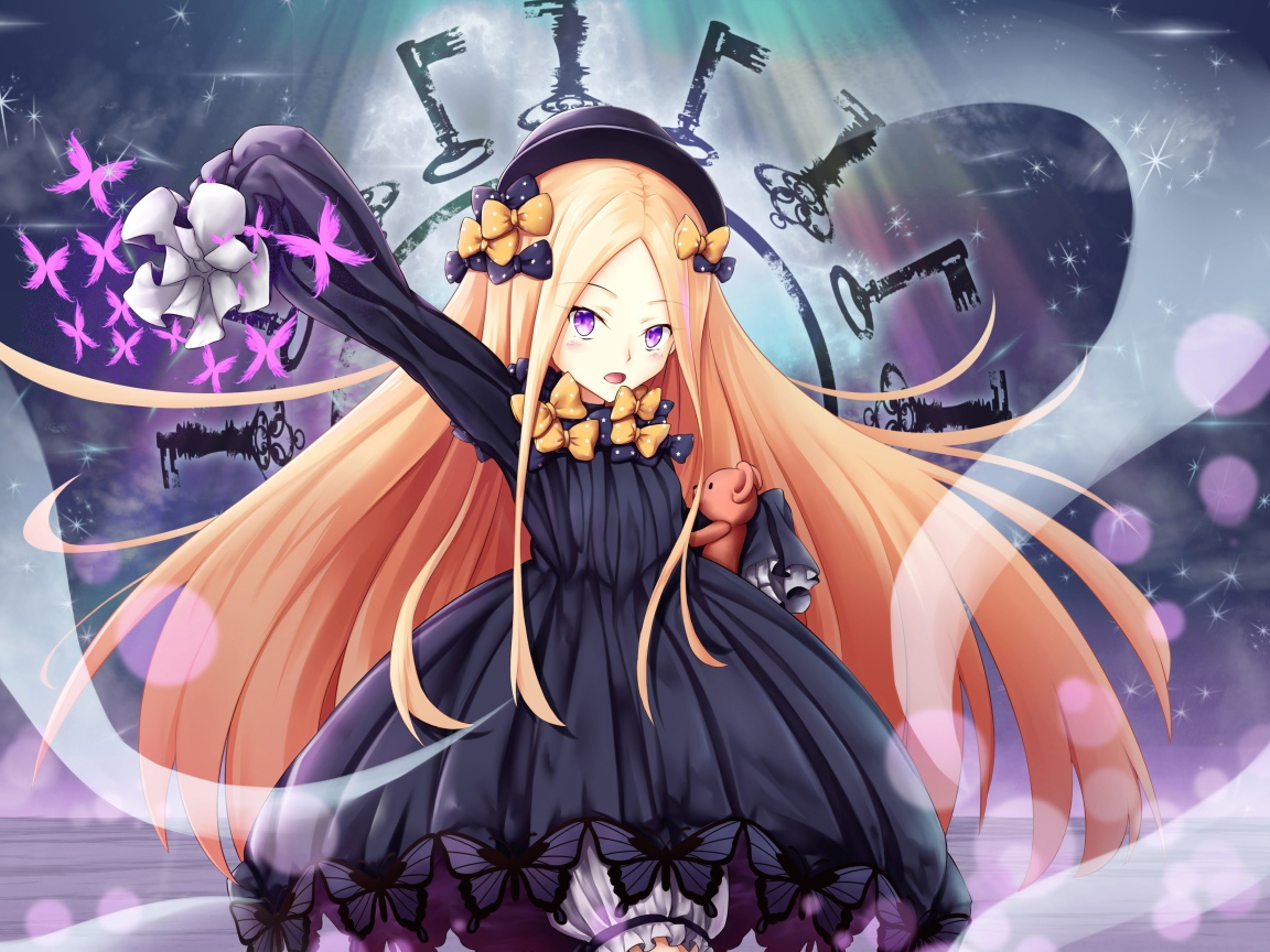 Девушка аниме с розовыми волосами в фиолетовом платье Обои для рабочего стола 1152x864