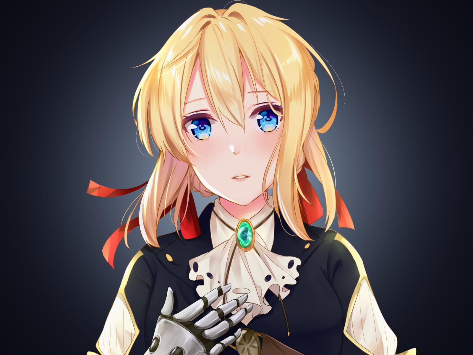 Девушка аниме Вайолет Эвергарден на сером фоне Обои для рабочего стола 1600x1200