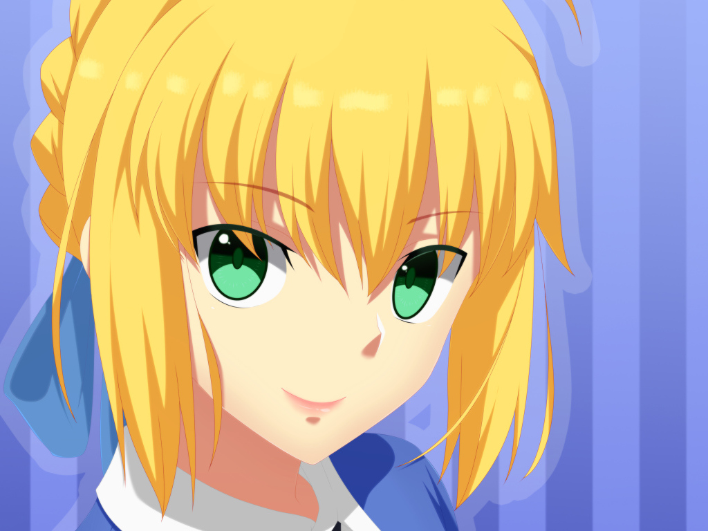 Лицо зеленоглазой девушки аниме с желтыми волосами