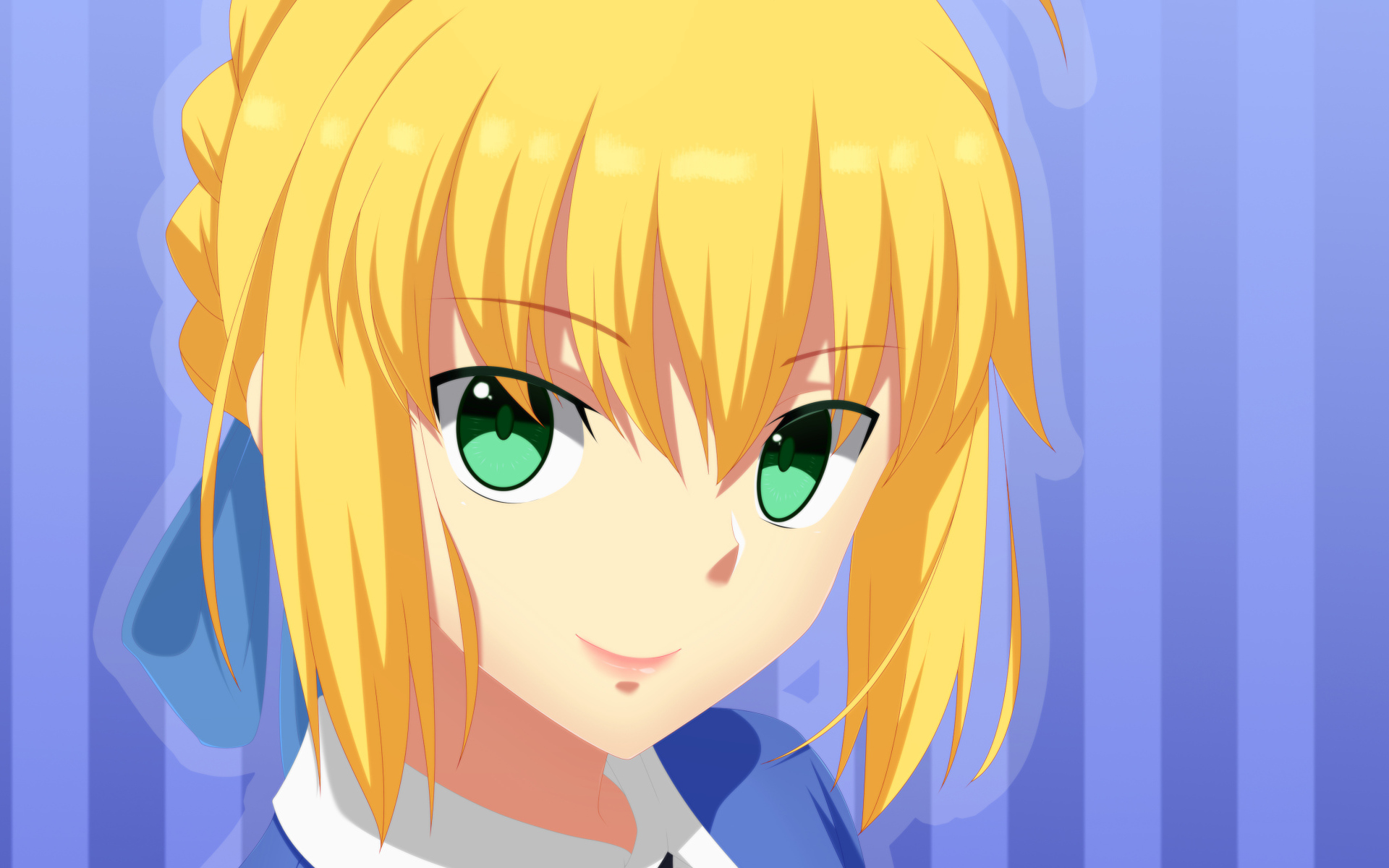 Лицо зеленоглазой девушки аниме с желтыми волосами Обои для рабочего стола 1920x1200