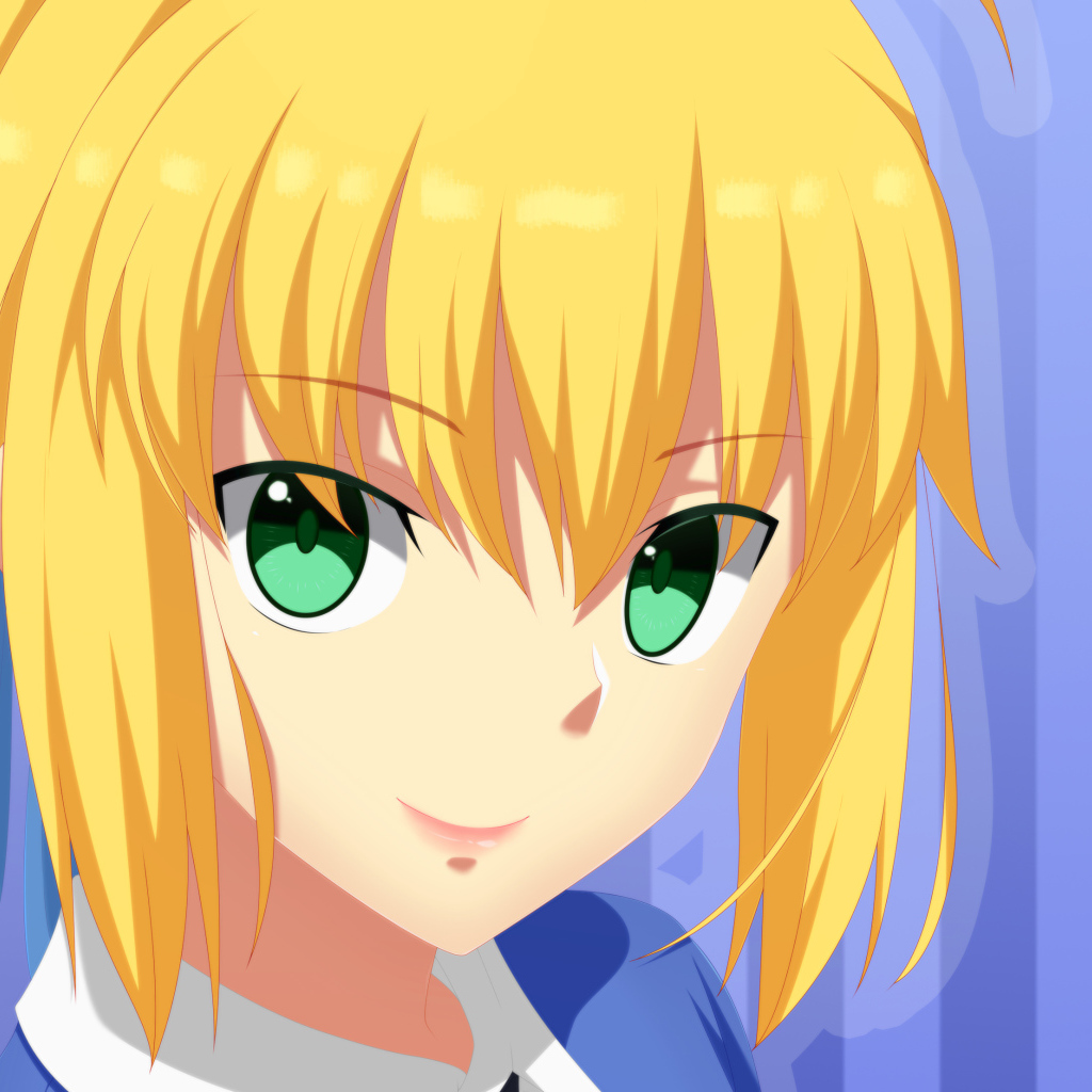 Лицо зеленоглазой девушки аниме с желтыми волосами