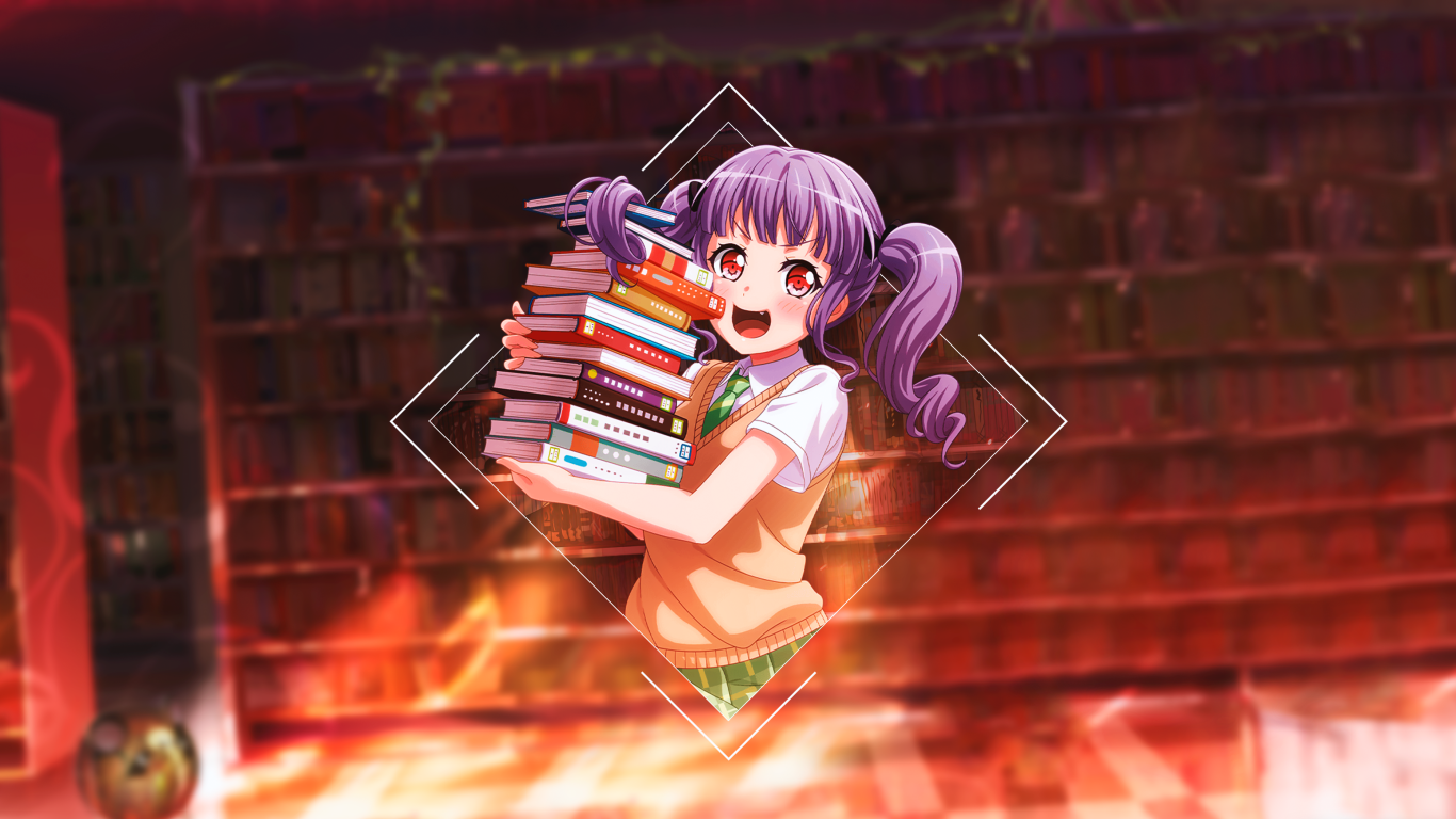 Девушка аниме с книгами в библиотеке - 3840x2099