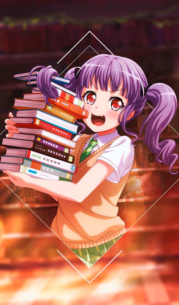 Девушка аниме с книгами в библиотеке Обои для рабочего стола 600x1024
