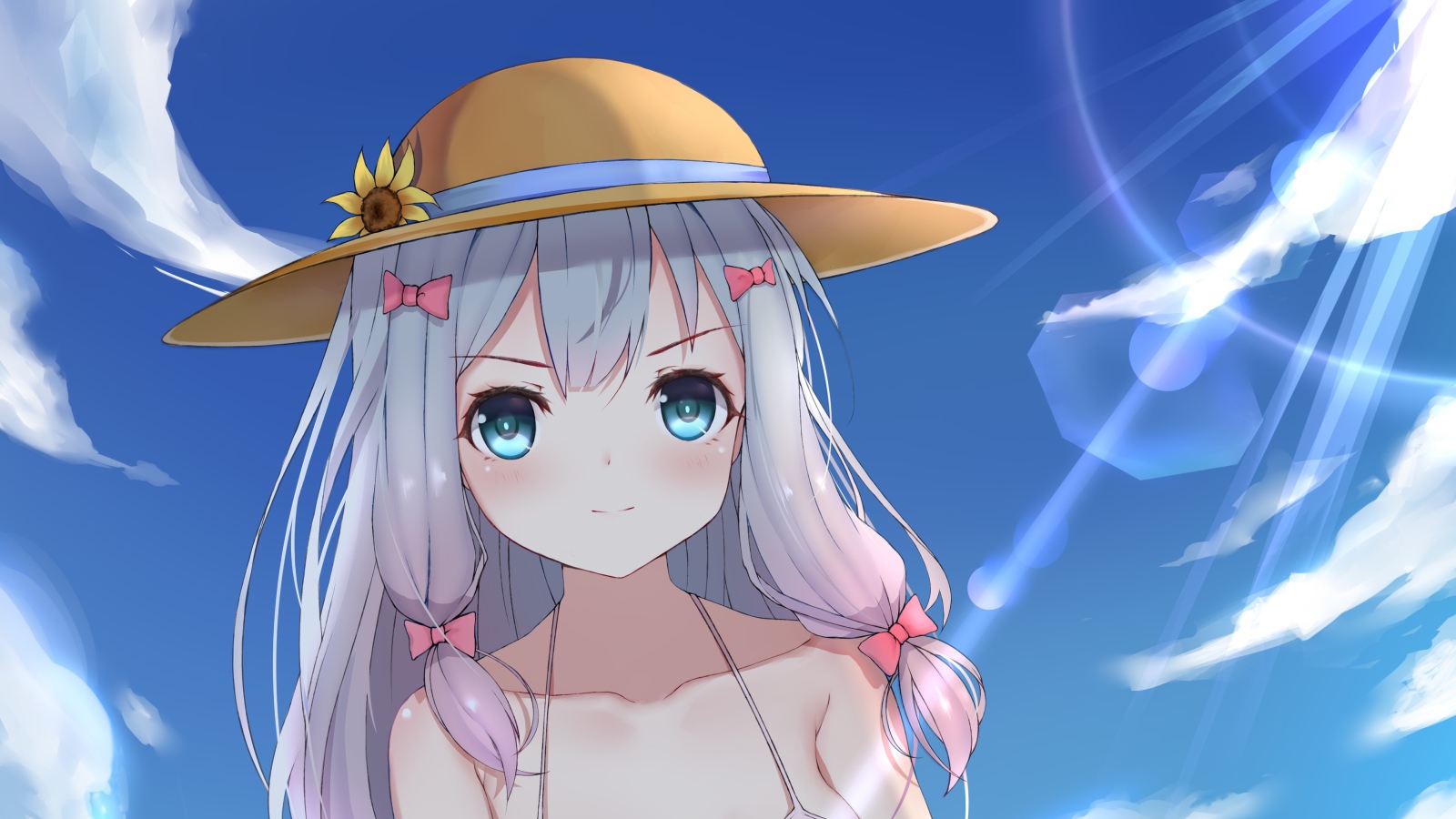 Девушка аниме Эроманга-Сэнсэй в шляпке на фоне неба - 4133x2324