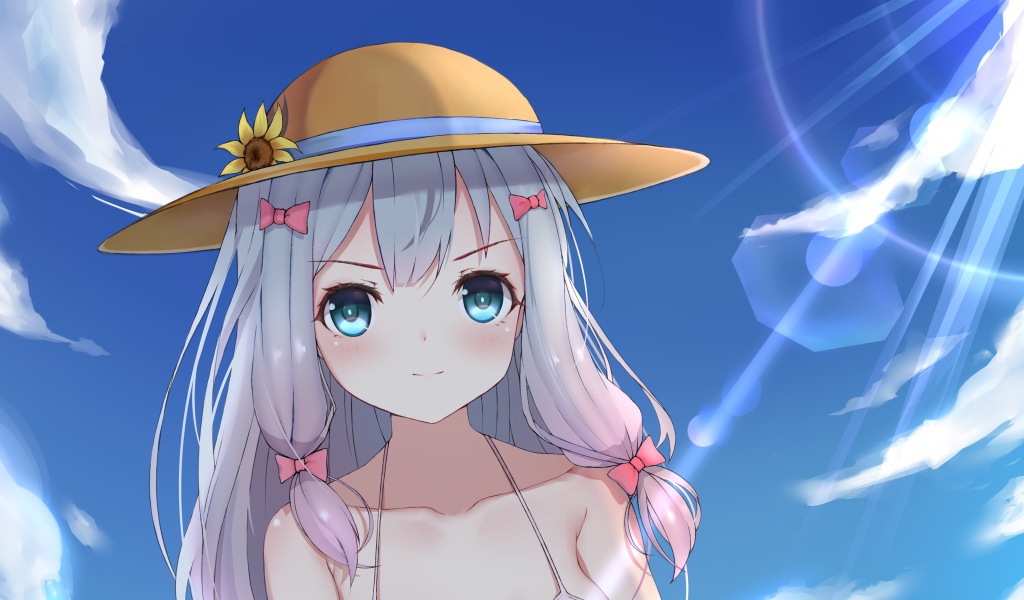 Девушка аниме Эроманга-Сэнсэй в шляпке на фоне неба - 4133x2324