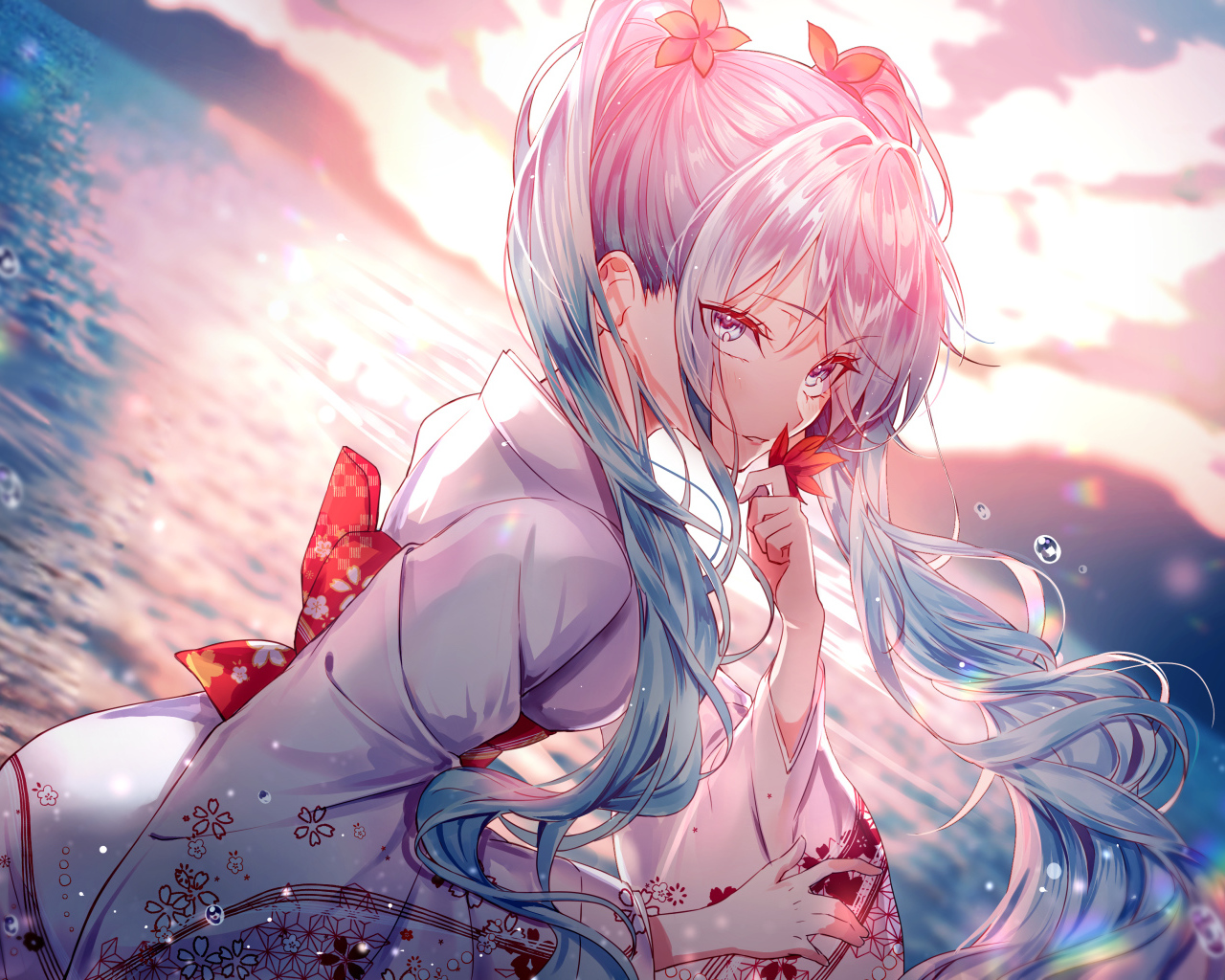 Девушка аниме Мику Хацунэ с длинными голубыми волосами - 3508x2480