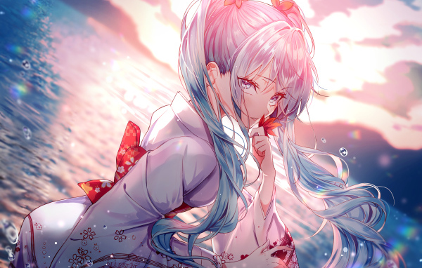 Девушка аниме Мику Хацунэ с длинными голубыми волосами - 3508x2480