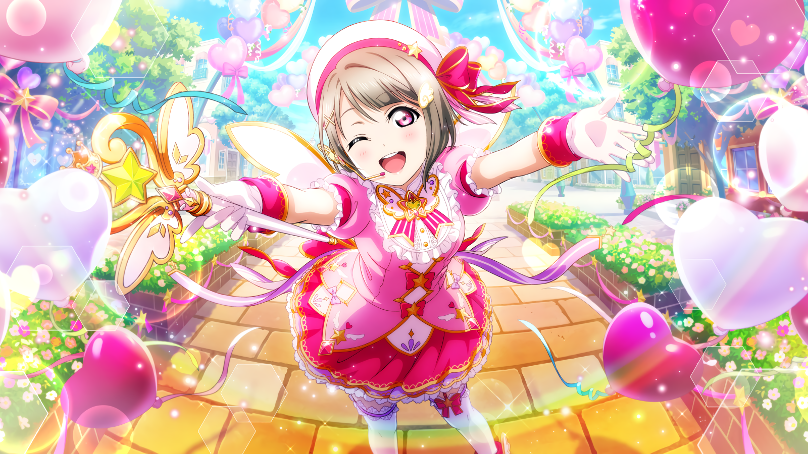 Девушка аниме в розовом платье с шариками Обои для рабочего стола 1600x900