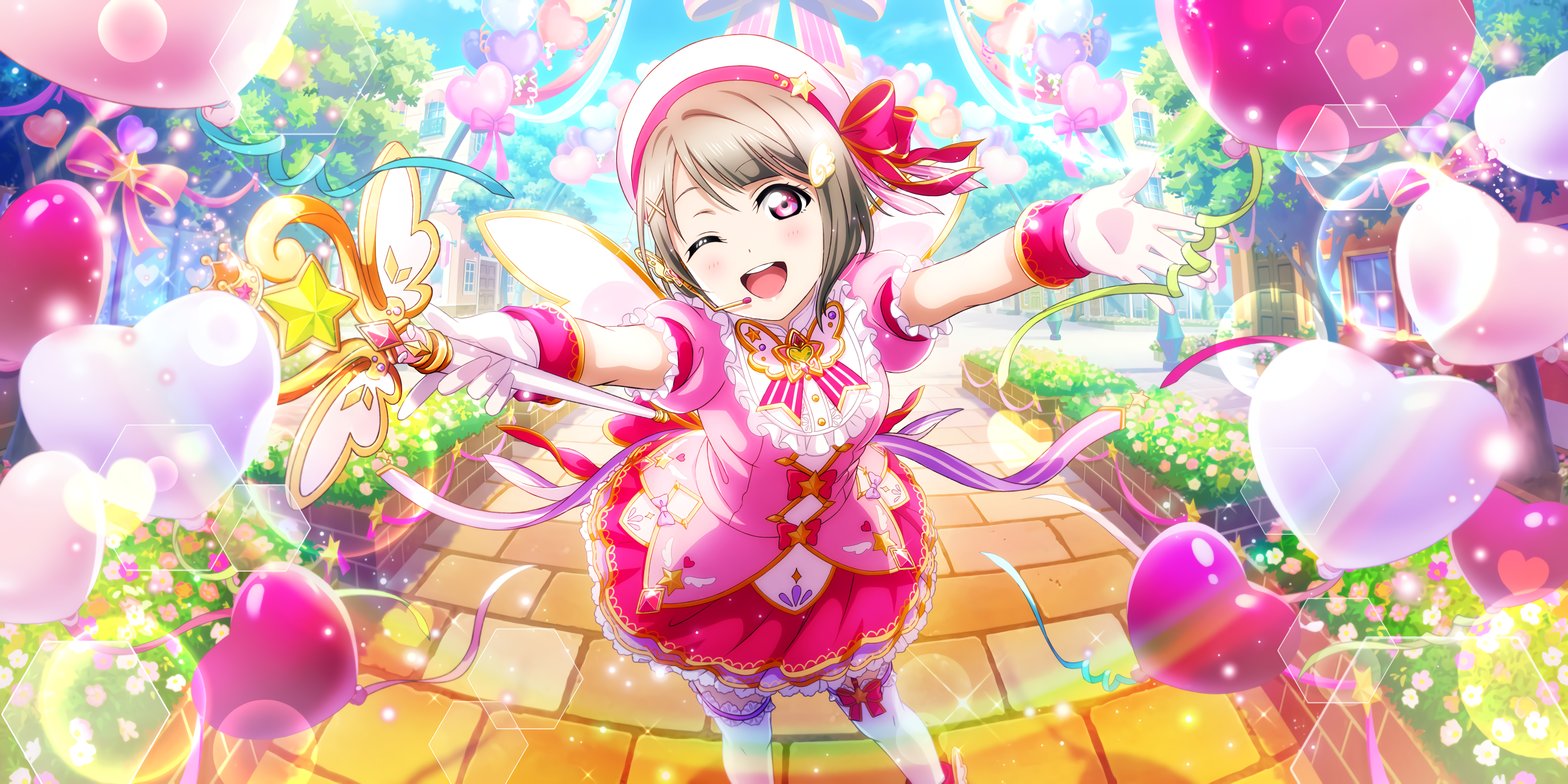 Девушка аниме в розовом платье с шариками - 3600x1800