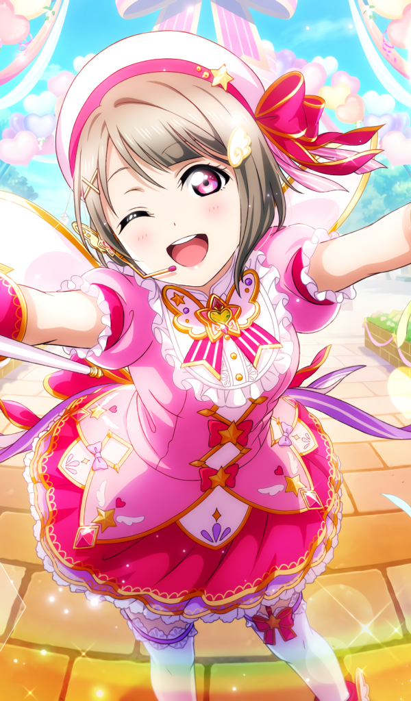 Девушка аниме в розовом платье с шариками Обои для рабочего стола 600x1024