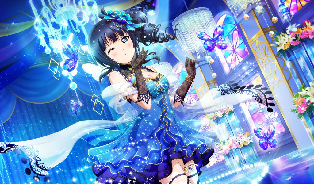 Девушка аниме в красивом синем платье Обои для рабочего стола 1024x600