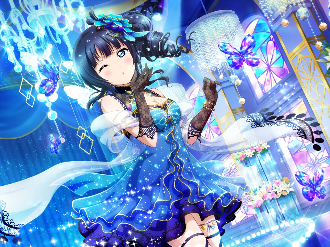 Девушка аниме в красивом синем платье Обои для рабочего стола 1152x864