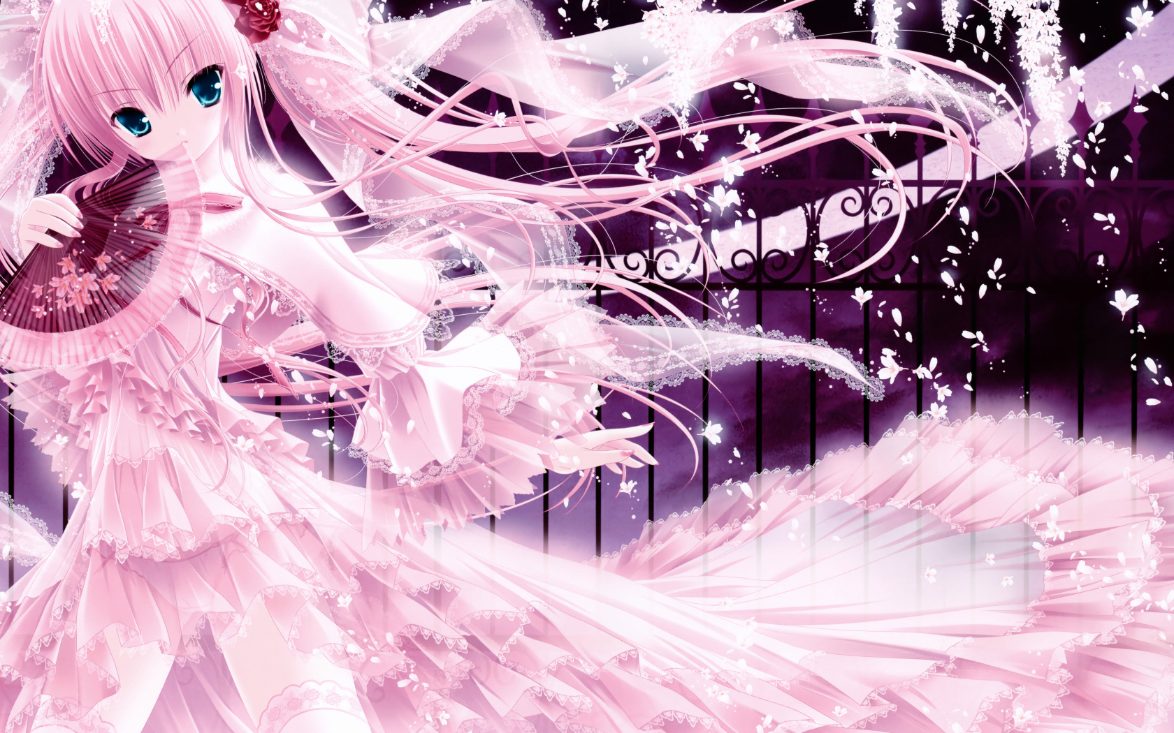 Красивая девушка аниме в длинном розовом платье - 7680x4320