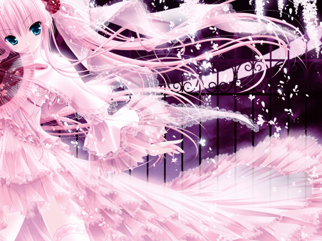 Красивая девушка аниме в длинном розовом платье Обои для рабочего стола 640x480