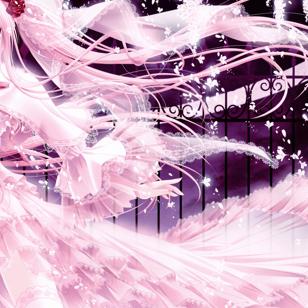 Красивая девушка аниме в длинном розовом платье Обои для рабочего стола 1024x1024