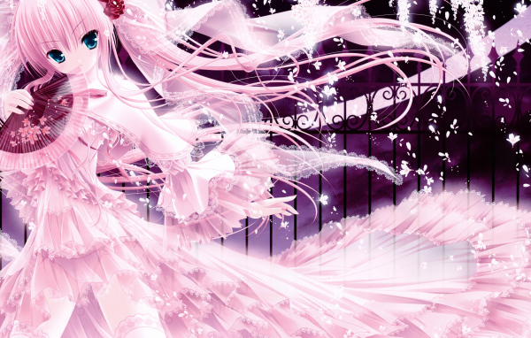 Красивая девушка аниме в длинном розовом платье Обои для рабочего стола 600x382