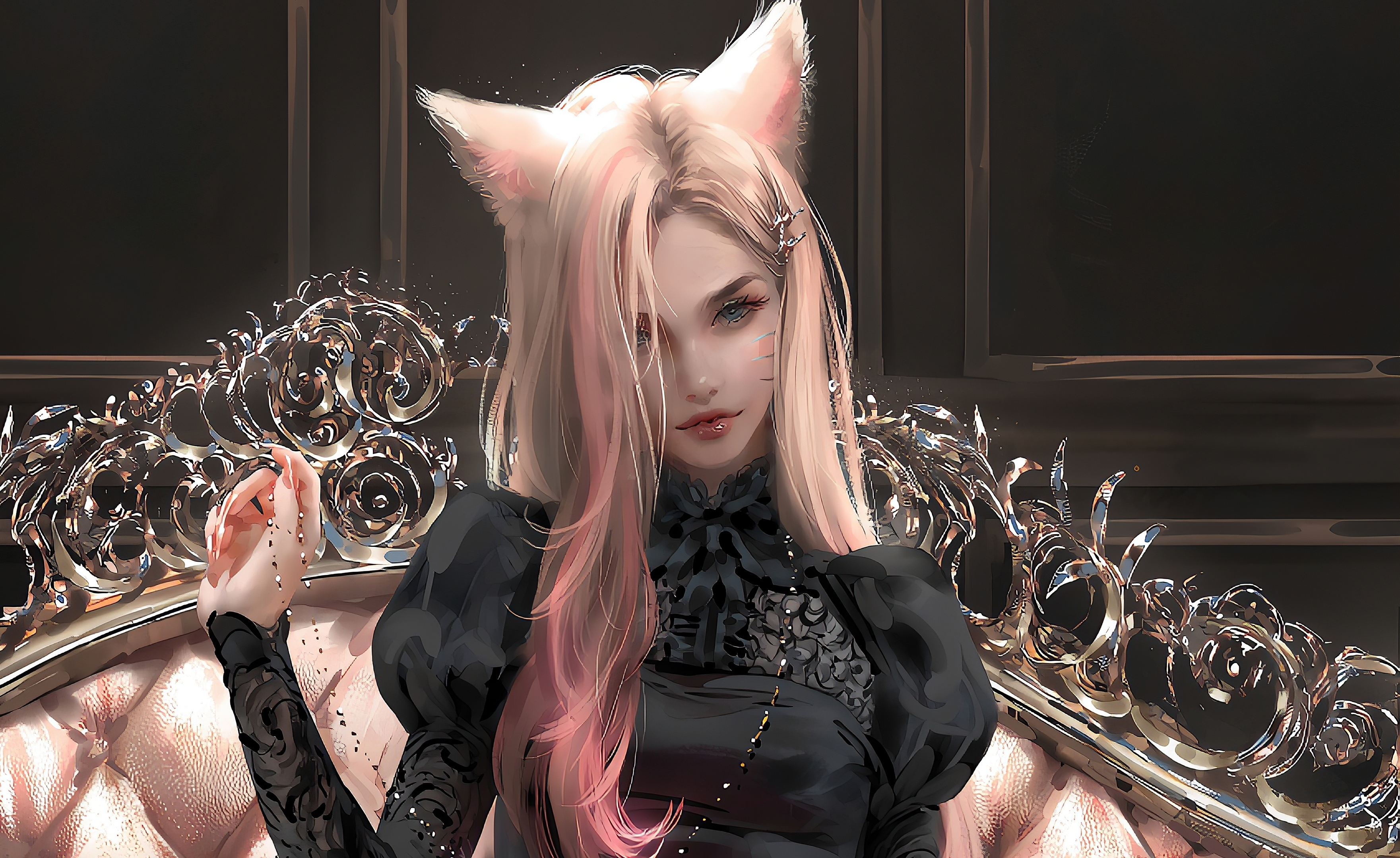 Фантастическая девушка кошка в черном наряде - 3522x2160
