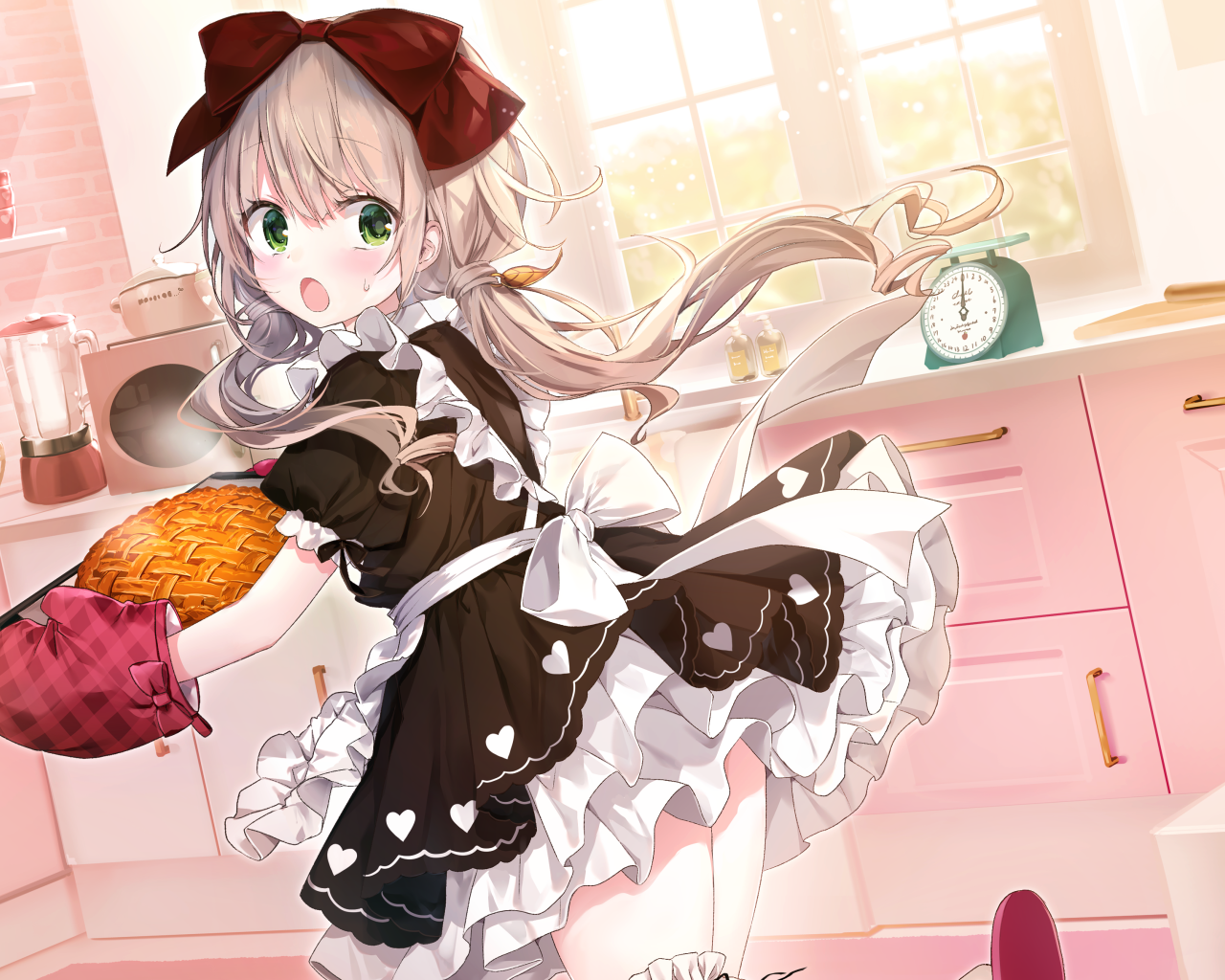 Девушка аниме на кухне с пирогом Обои для рабочего стола 1280x1024