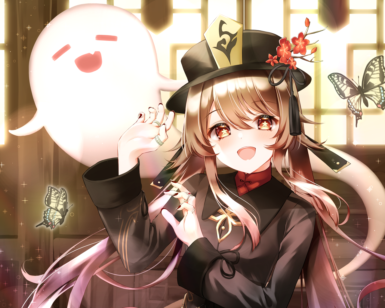 Девушка аниме с бабочками и приведением Обои для рабочего стола 1280x1024