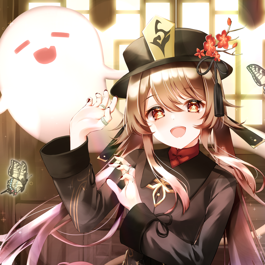 Девушка аниме с бабочками и приведением Обои для рабочего стола 1024x1024