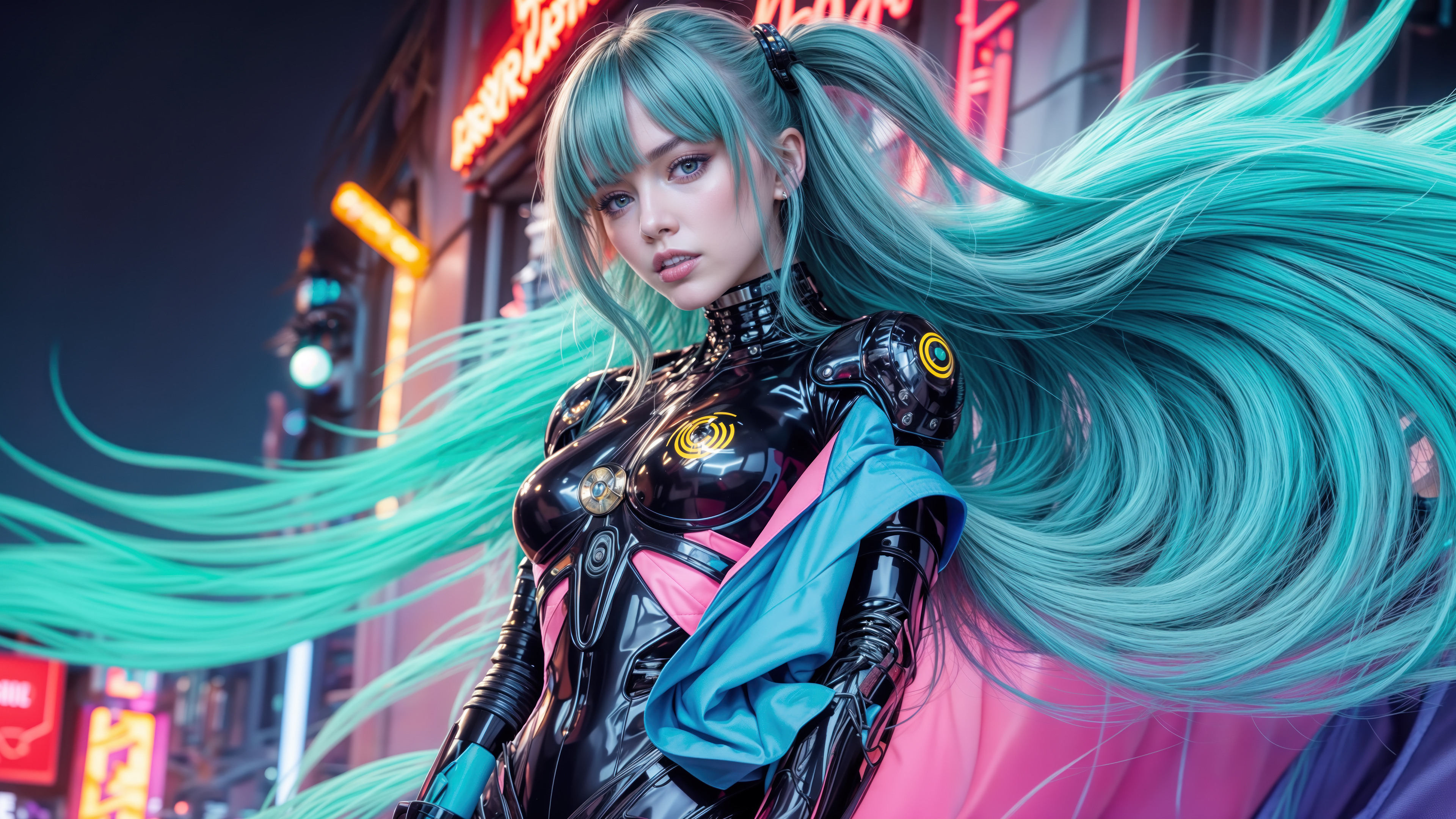 Девушка аниме с длинными голубыми волосами - 3840x2160