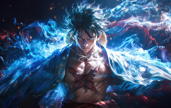 Мужчина аниме с неоновым дымом Обои для рабочего стола 600x382