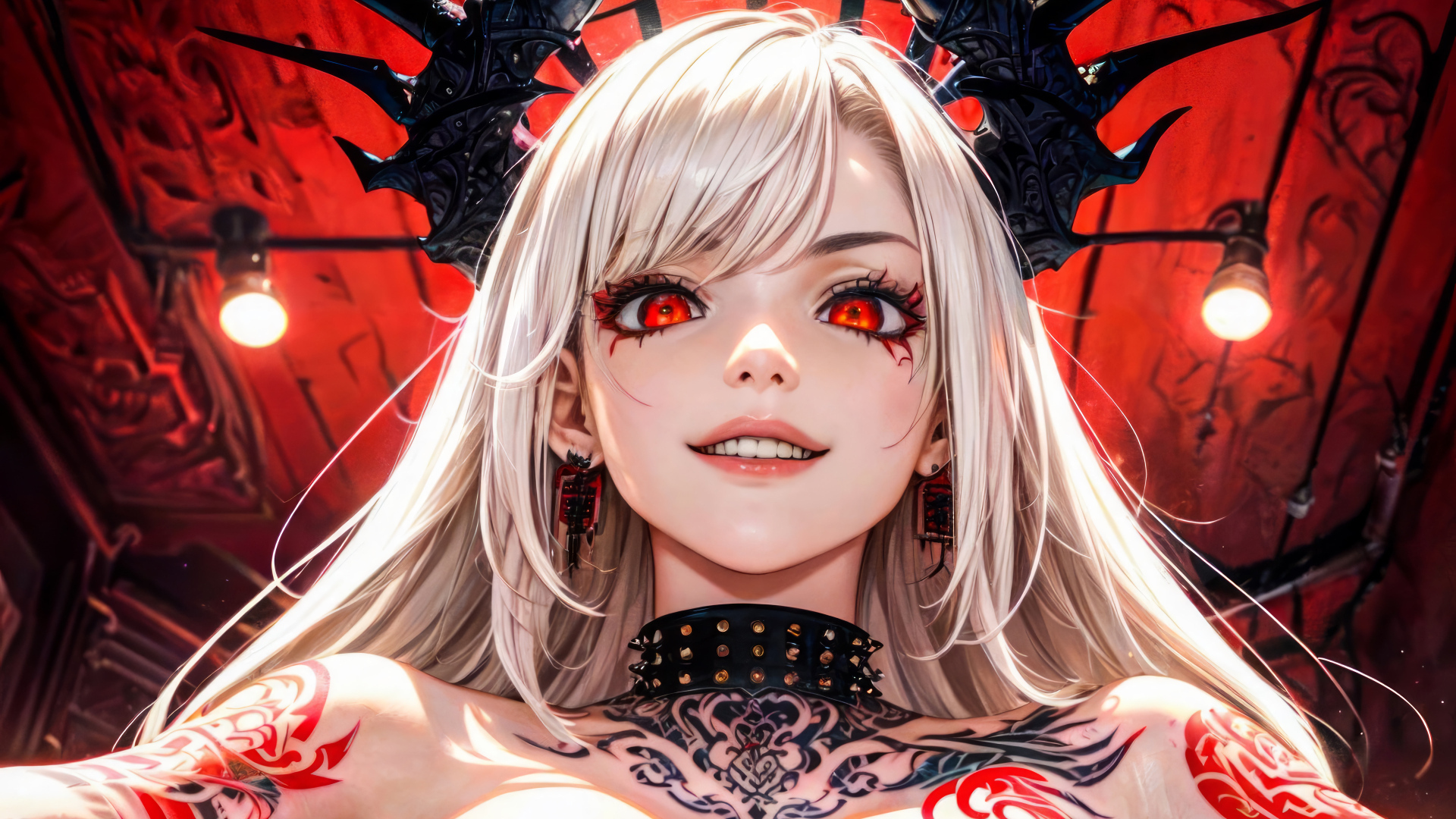 Девушка аниме демон с красными глазами Обои для рабочего стола 1920x1080