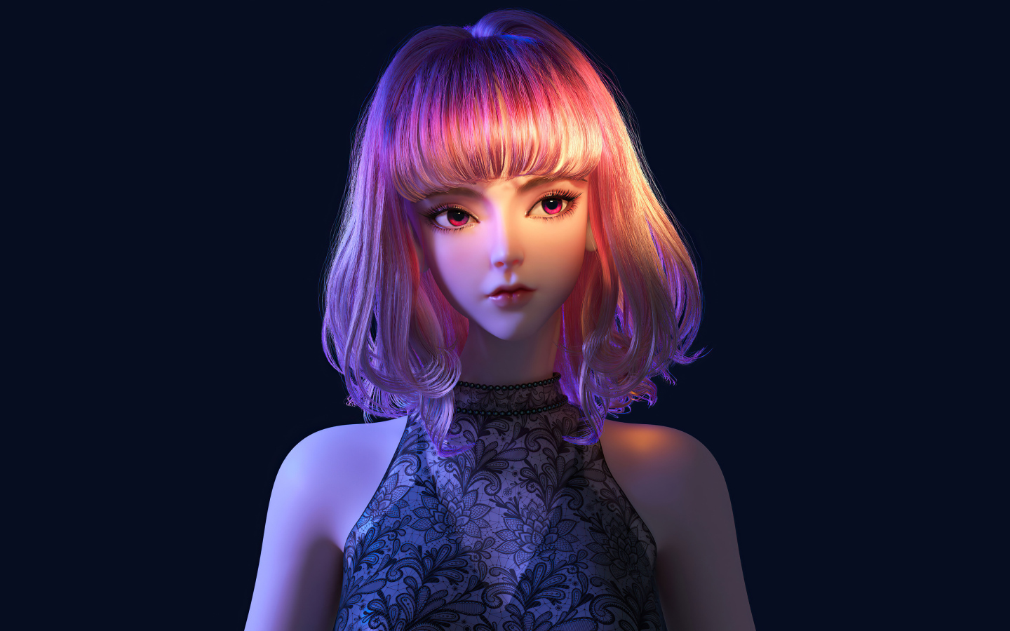 Девушка аниме с розовыми волосами на черном фоне Обои для рабочего стола 1440x900