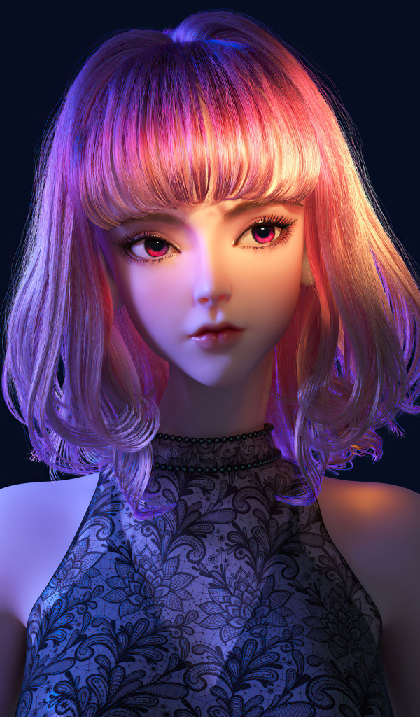 Девушка аниме с розовыми волосами на черном фоне Обои для рабочего стола 600x1024