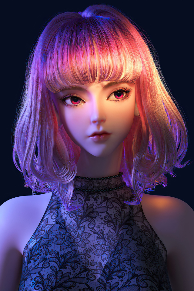Девушка аниме с розовыми волосами на черном фоне - 3840x2160