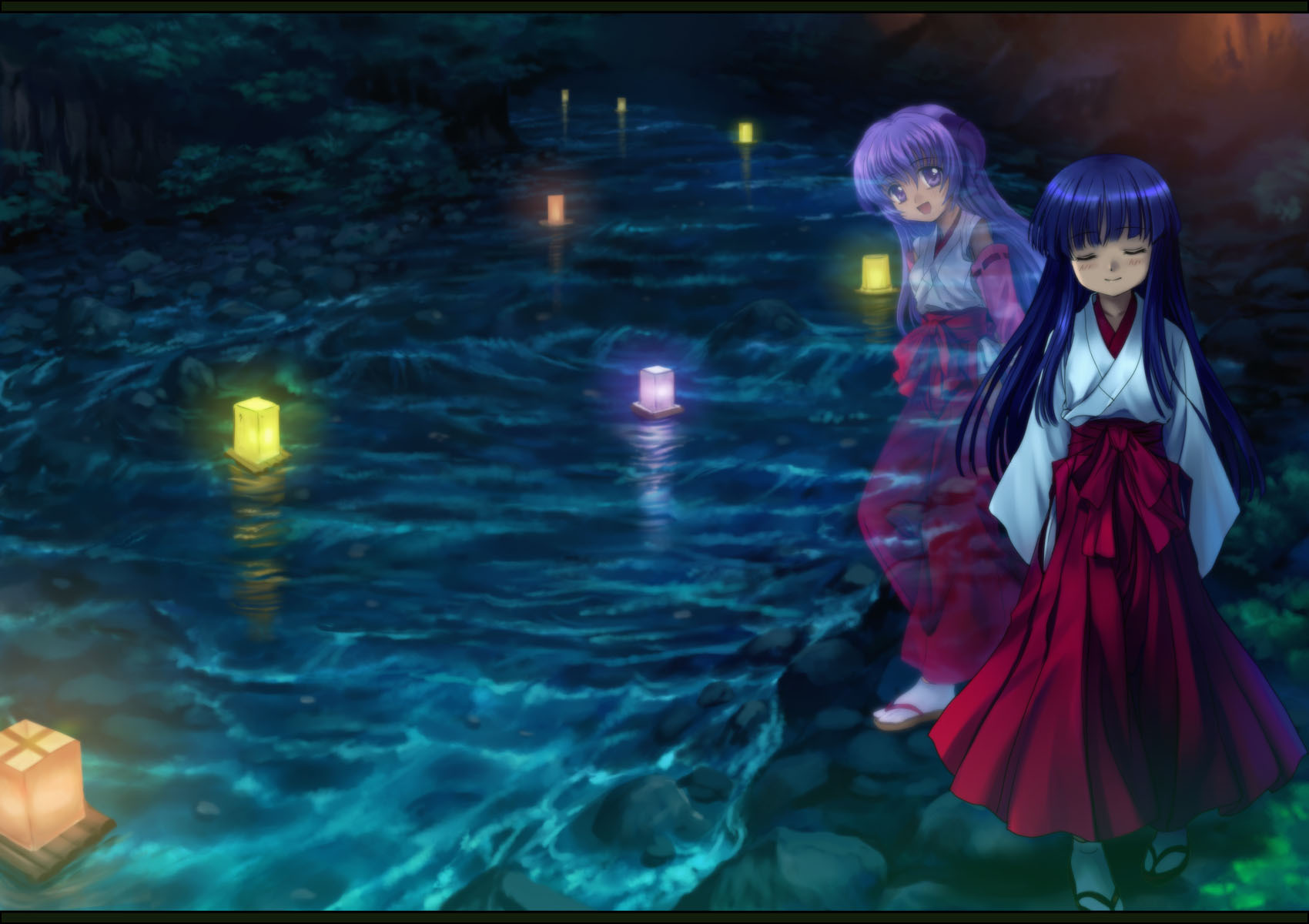 Фонарики плывут по реке - 1700x1200