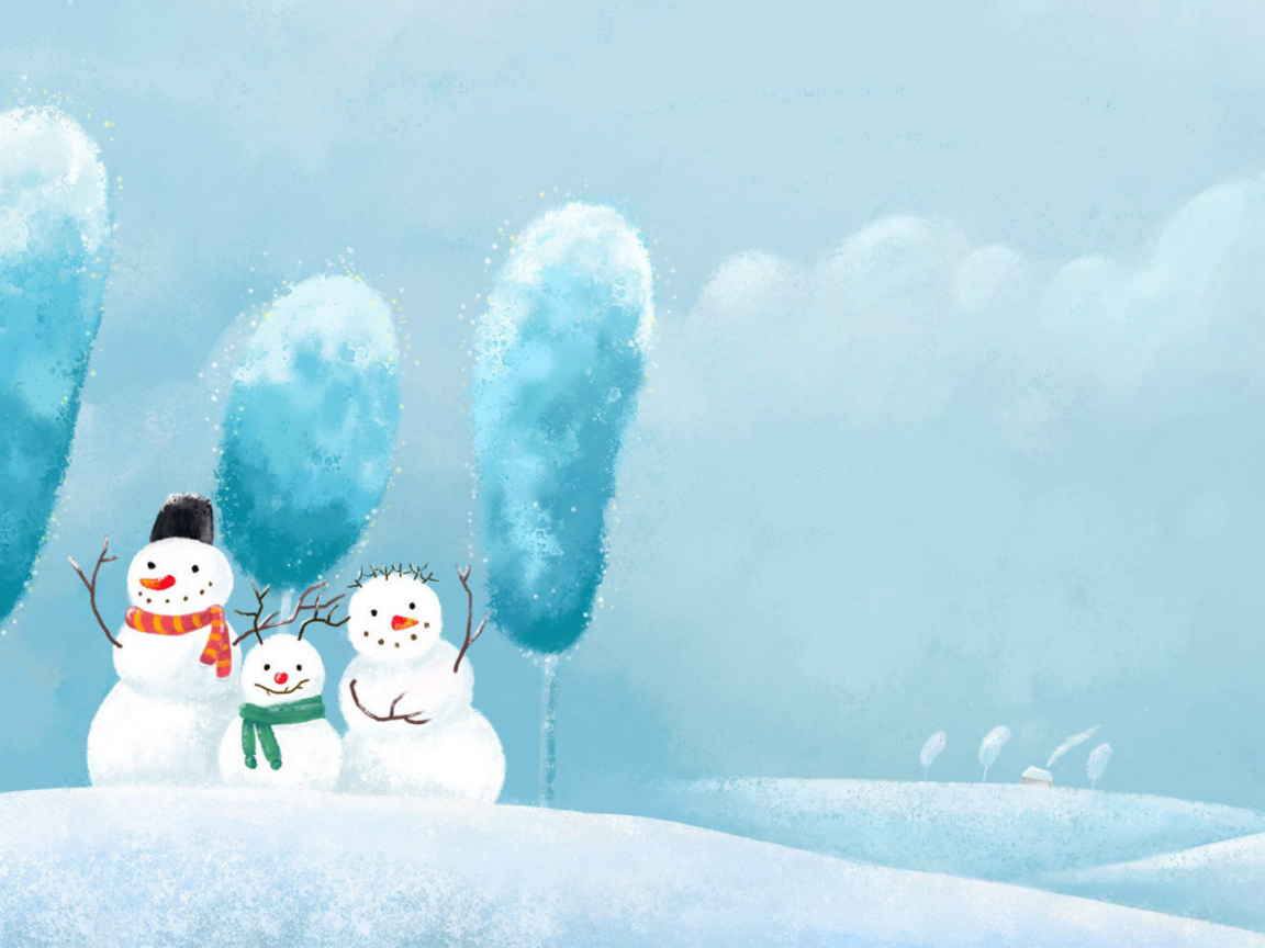Снеговики Обои для рабочего стола 1152x864