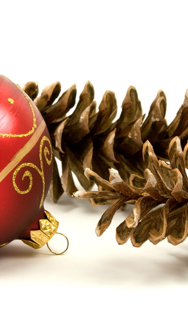 Шишки и елочные игрушки Обои для рабочего стола 600x1024