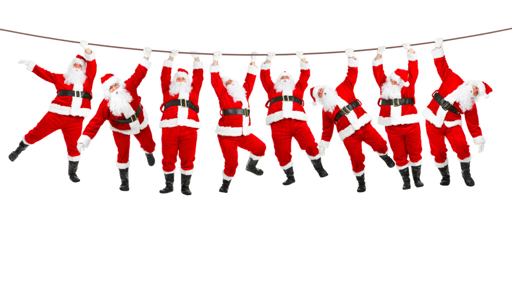 Санты Клаусы на веревочки Обои для рабочего стола 1024x600