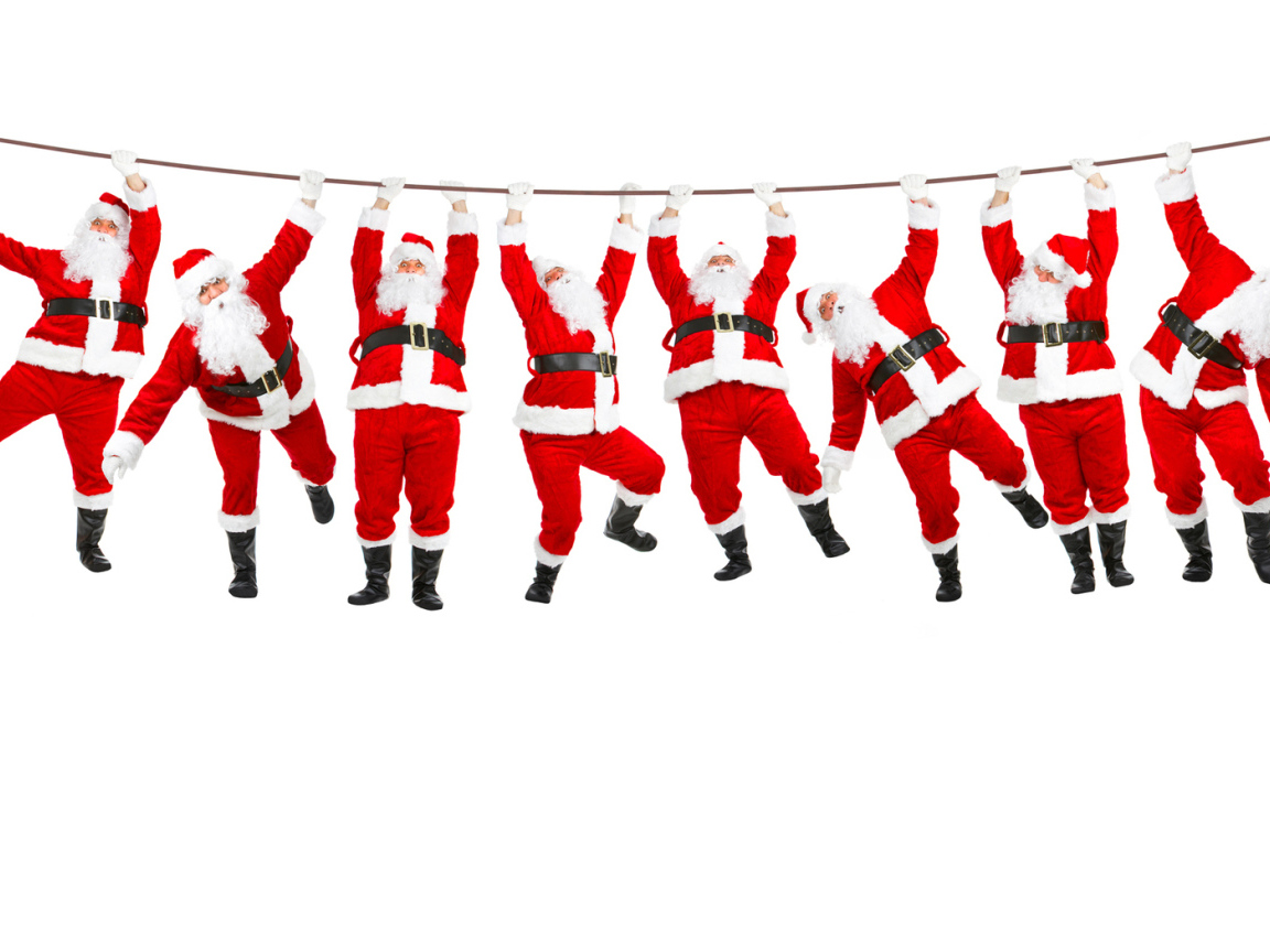 Санты Клаусы на веревочки Обои для рабочего стола 1152x864
