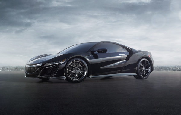 Черный автомобиль Acura NSX, 2018 на фоне неба Обои для рабочего стола 600x382