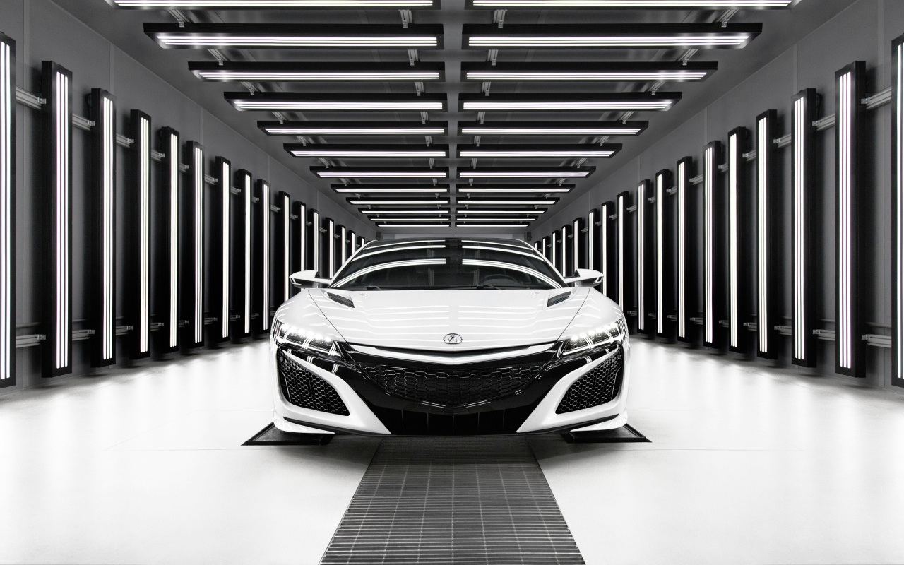 Белый автомобиль Acura NSX, 2019 вид спереди