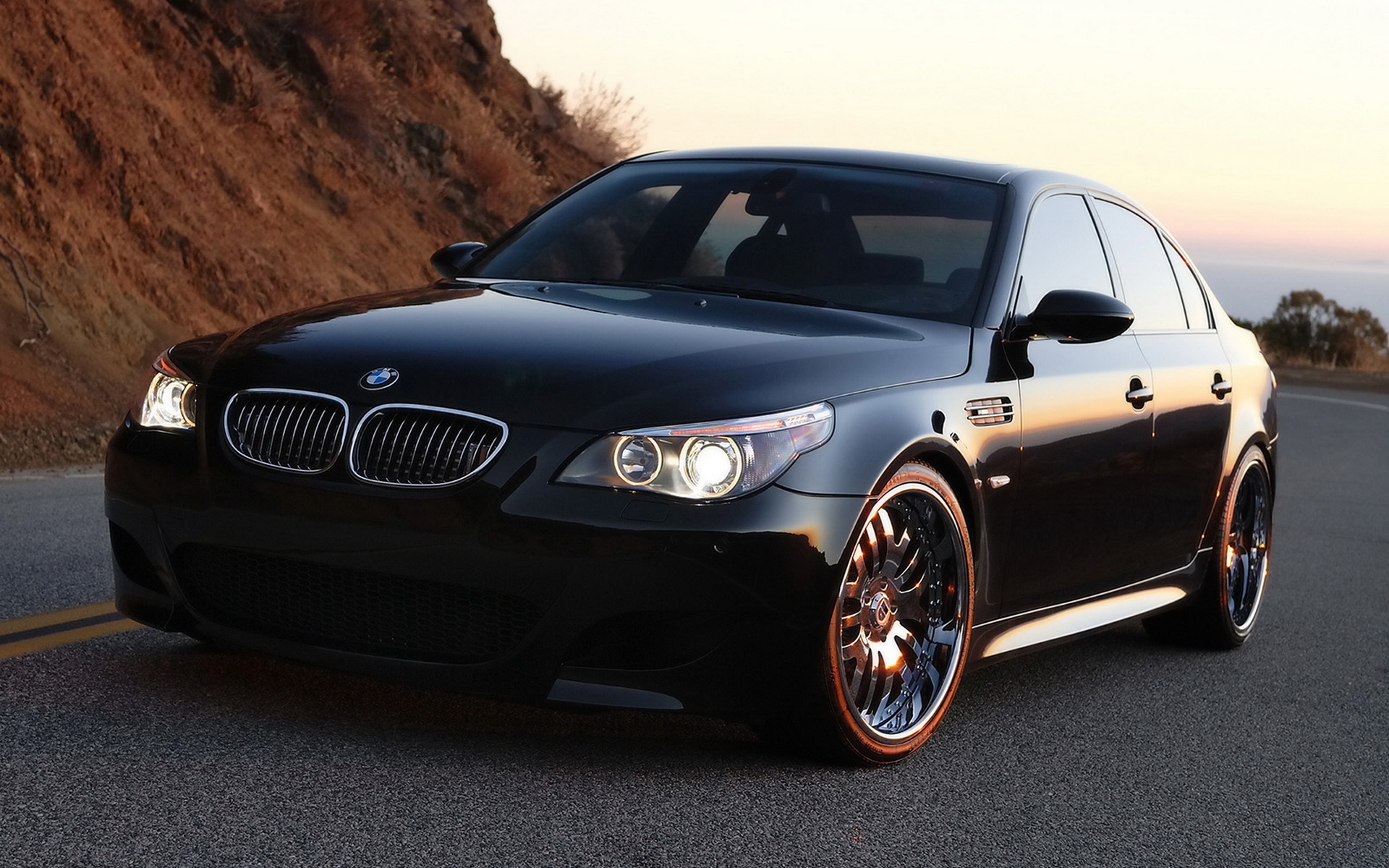 Черный кожаный салон автомобиля BMW M5 MotoGP